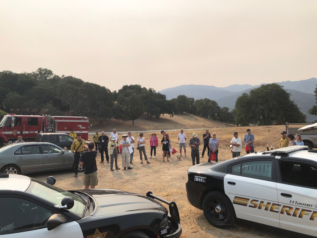 If fire or another natural disaster prevents you from leaving Sky Ranch or Via Cielo by your traditional route, would you know how to escape? In Fall 2021, more than 30 Tularcitos Ridge residents and first responders gathered with CALFIRE, the Monterey County Sheriff’s Office, and Monterey County Office of Emergency Services to practice evacuating Tularcitos Ridge via alternate dirt roads through the Tira Nanza Vineyard; from Eagle’s Court through Mike Officer’s property, and through Richard Crane’s property in the Via Cielo neighborhood. At a de-briefing afterward, residents said they felt safer knowing where their options are, and Monterey County Office of Emergency Services asked to highlight Tularcitos Ridge Fire Safety Group as a forward-thinking fire community in it’s upcoming County Evacuation Preparedness Report.
